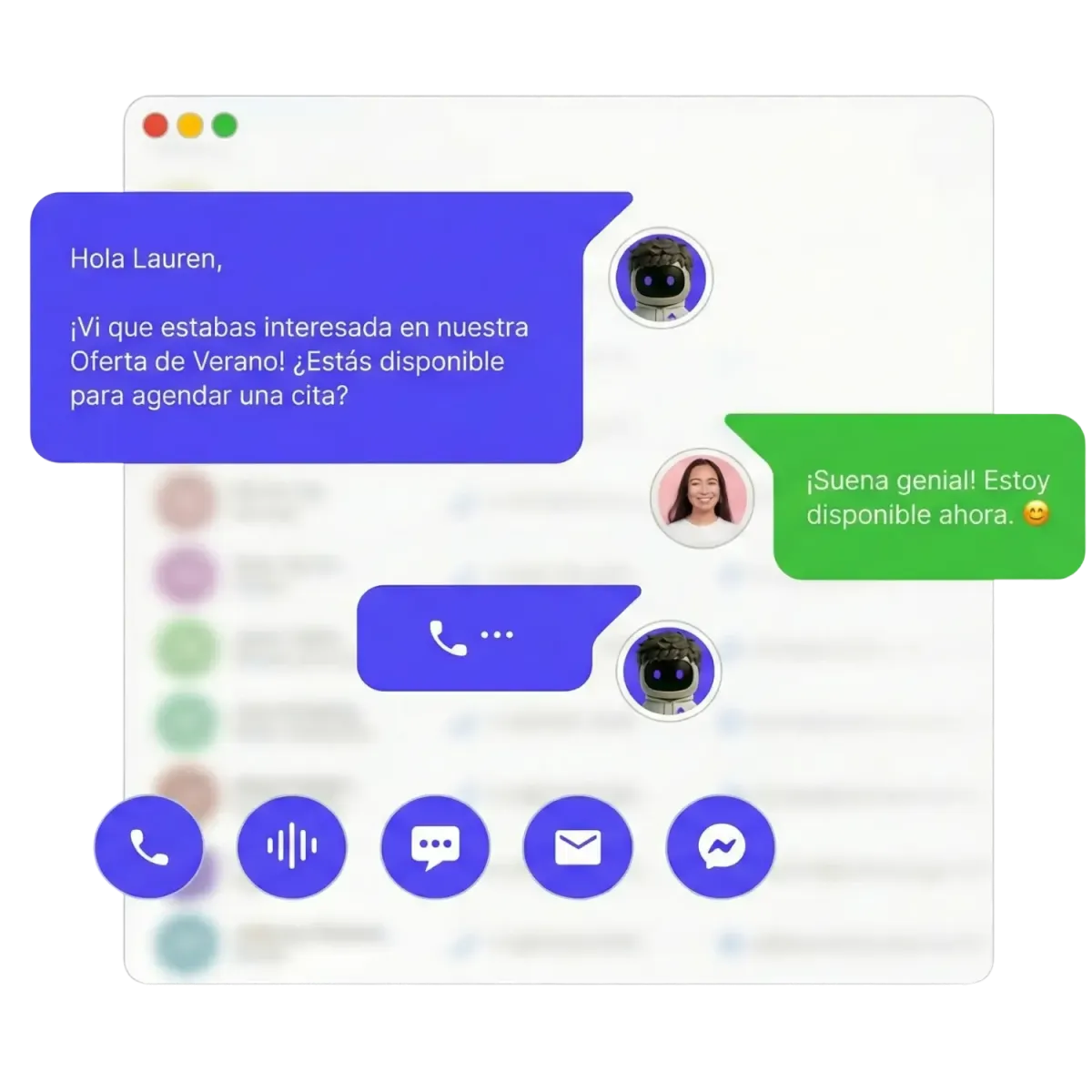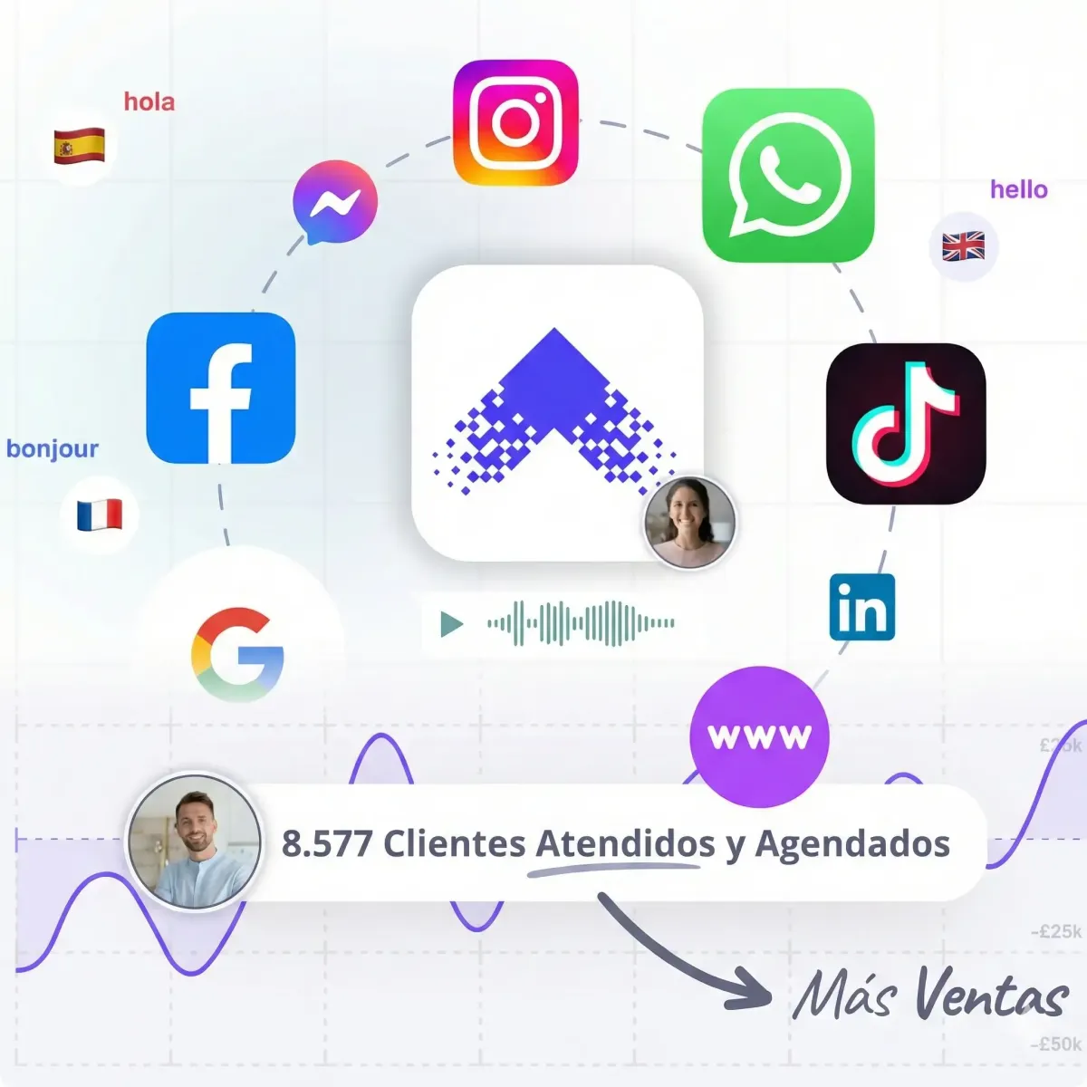 Multiplica tu capacidad de atención sin los costos de un Call Center. Atiende y agenda a miles de clientes al instante.